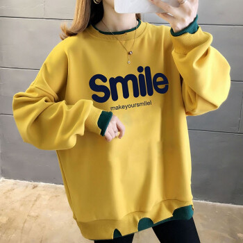 萱蓝卫衣女纯棉ins网红港风复古潮2020夏季双子领百搭假两件印花字母oversize外套女9747 黄色 均码【建议88斤-135斤】 |