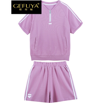 歌弗娅品牌 休闲运动套装女夏款新2020欧洲站晨跑锻炼时尚短袖短裤卫衣两件套 灰色 M |