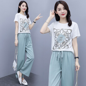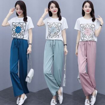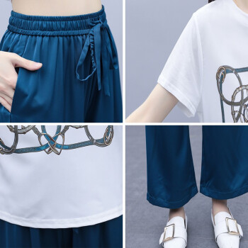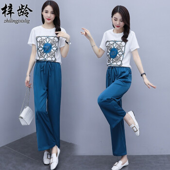 梓龄 休闲运动套装女卫衣套装女2020夏季新款气质女神范洋气时尚减龄休闲阔腿两件套女 蓝色 请拍对应码数 |