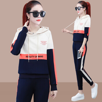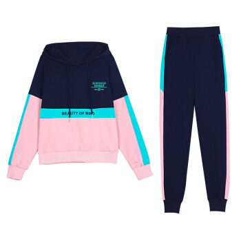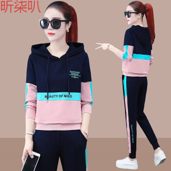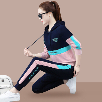 昕柒叭连帽卫衣运动套装女2020新款时尚潮流休闲运动服宽松韩版两件套 宝蓝色 L(建议98~110斤) |