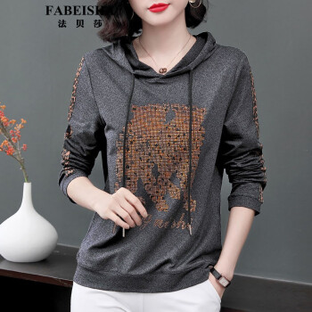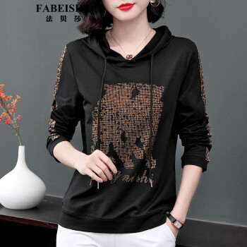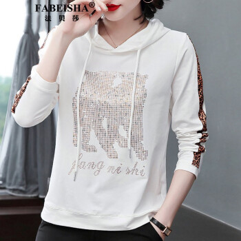 FABEISHA品牌卫衣女长袖2020秋季新款中年大码宽松休闲连帽上衣 白色 M |