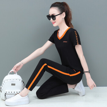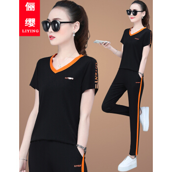俪缨运动套装女卫衣女2020新款春夏学生胖MM韩版宽松显瘦上衣长裤跑步服减龄休闲套装两件套大码女装潮 黑色 此码勿拍,请拍自身对应码数 |