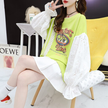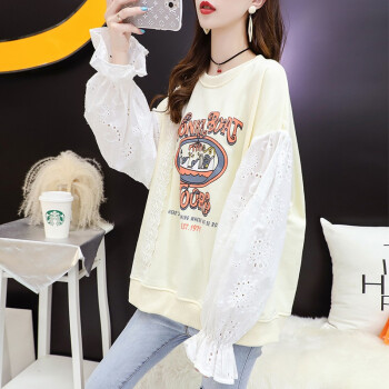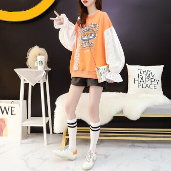 小赖猴蕾丝拼接卫衣女长袖薄外套早秋2020新款韩版宽松慵懒风上衣 橘色 均码 |
