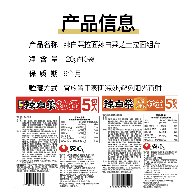 农心辣白菜拉面方便面&农心辣白菜浓情芝士拉面方便面组合装 |