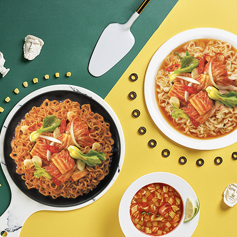 农心炒辣白菜拌面(内含韩国切片泡菜)&农心辣白菜芝士辛拉面方便面组合装 |