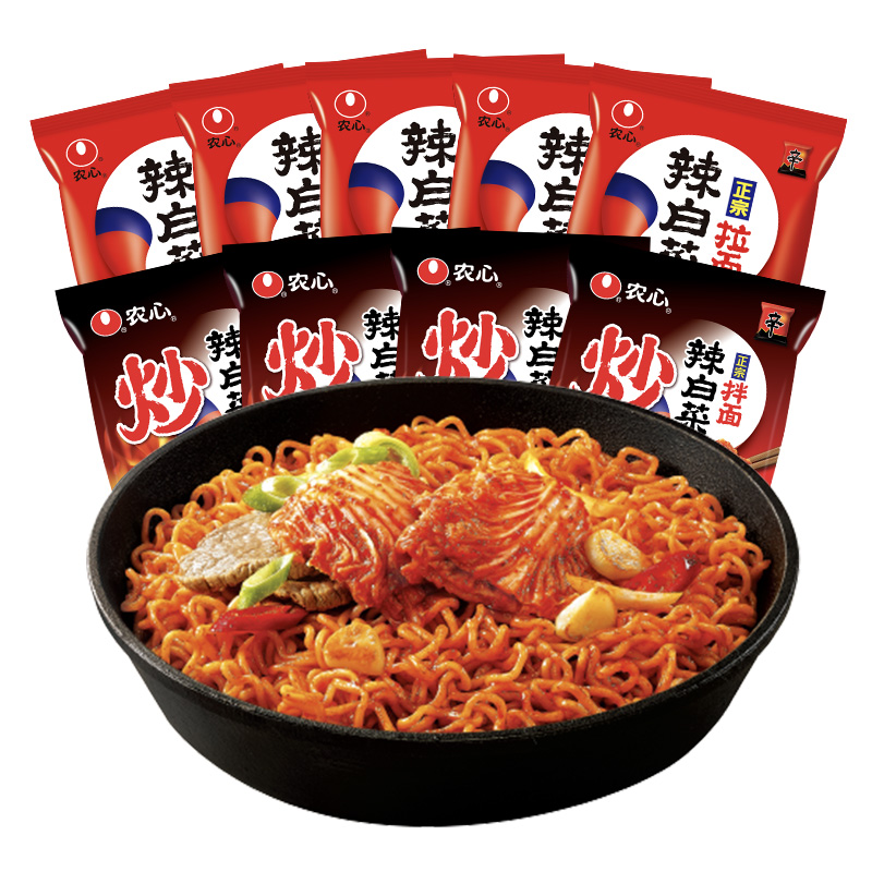 农心辣白菜拉面方便面&农心炒辣白菜拌面(含韩国切片泡菜)组合装 |