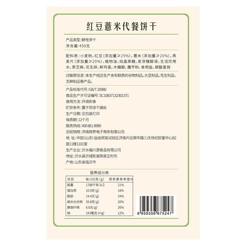 红豆薏米代餐饼 |
