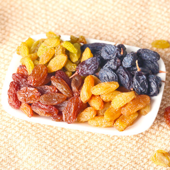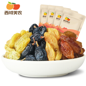 西域美农 四色葡萄干1000g 新疆特产 无硫熏 已灭菌开袋即食 黑加仑树上黄玫瑰红提零食 |
