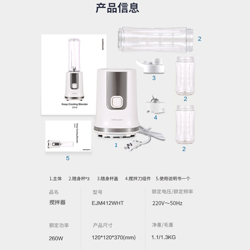 按键式3杯便携式搅拌机随身奶昔果蔬汁杯家用电动榨汁机【不锈钢/白色】 |