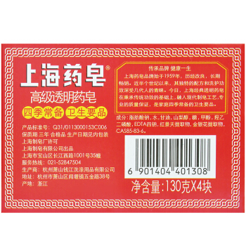 上海药皂 抑菌香皂洗手沐浴皂清洁肥皂130g*4块 |