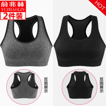 【2件装】俞兆林高强度运动内衣防震跑步背心少女聚拢无钢圈薄款瑜伽睡眠无痕学生运动文胸美背内衣文胸夏季 黑色+灰色 L码 36/80A至40/90B |