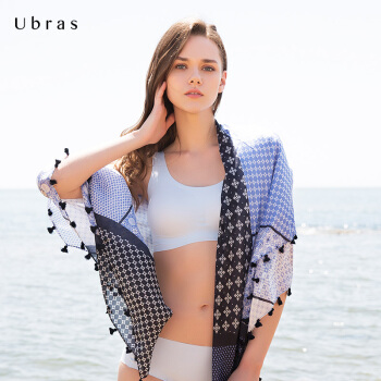 Ubras深V版舒适无痕文胸无钢圈文胸女士运动内衣零束缚睡眠 光面美背小胸少女胸罩 风信子蓝 L |