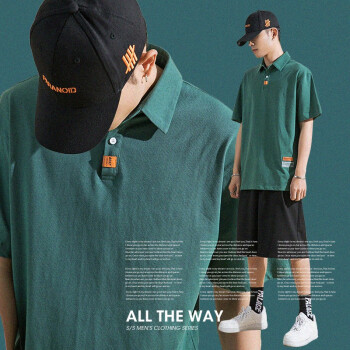 麦克丹奴 短袖t恤男 夏季polo衫男士潮牌翻领T恤纯棉休闲POLO衫五分袖bf宽松夏装体恤打底衫 绿色带领G1008 L推荐125-145斤 |
