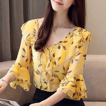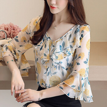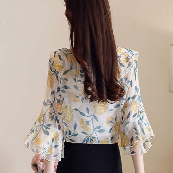 心莉美 雪纺衫女短袖2020夏季新款百搭洋气时尚女装上衣女设计感小众轻熟碎花衬衫女 白底碎花 L |