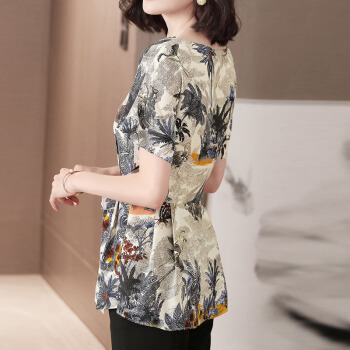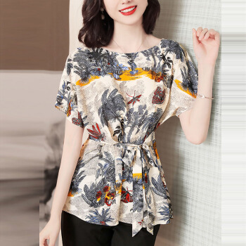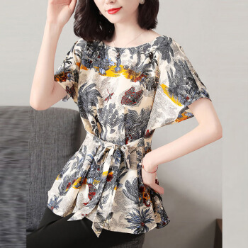 依语幽香雪纺衫女2020年夏季新款印花上衣时尚气质欧货小衫收腰洋气 图片色 XL |