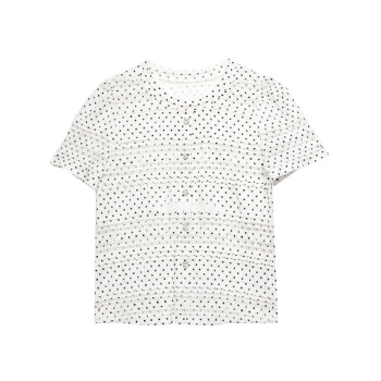 三彩2020夏季新款圆领短款直筒波点蕾丝印花单排扣短袖衬衫女 白色 155/80A/S |