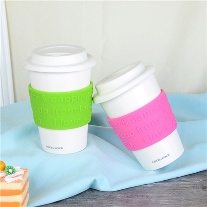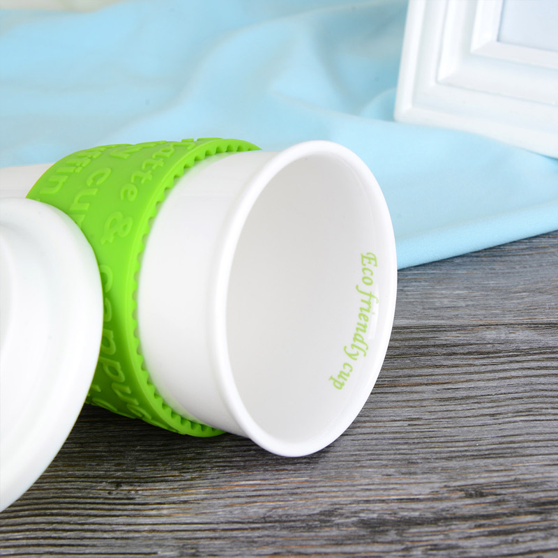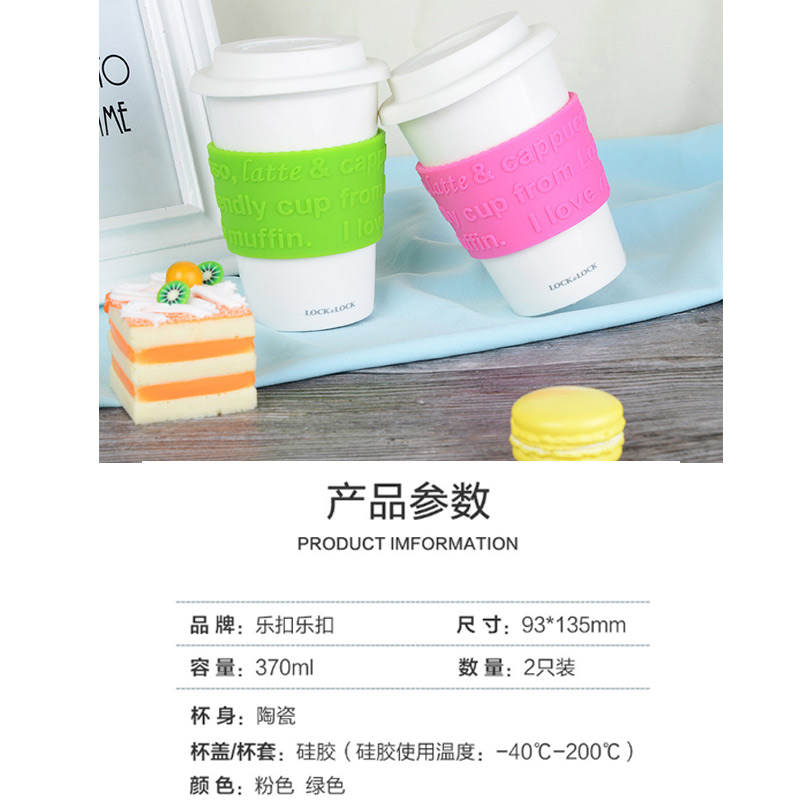 硅胶盖陶瓷水杯马克杯办公咖啡杯【陶瓷/绿色+粉色】 |
