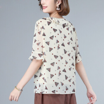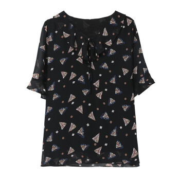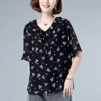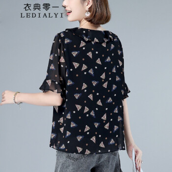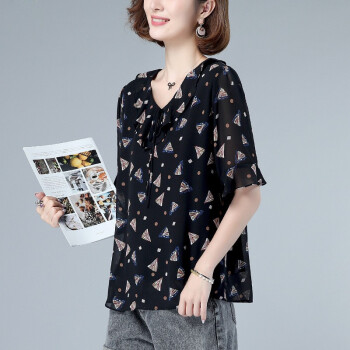衣典零一 2020夏装新款夏季女装雪纺衫女时尚百搭韩版休闲宽松女士妈妈装印花短袖T恤衫女上衣衫衣小衫 黑色 XL |