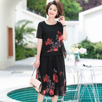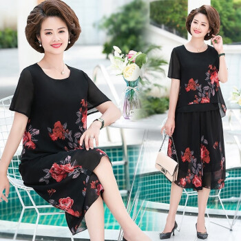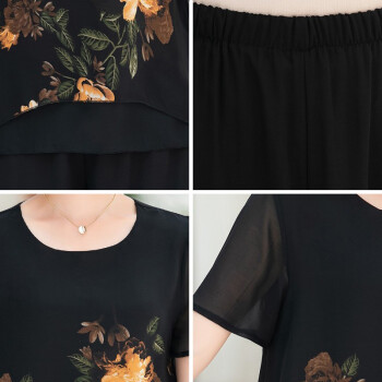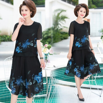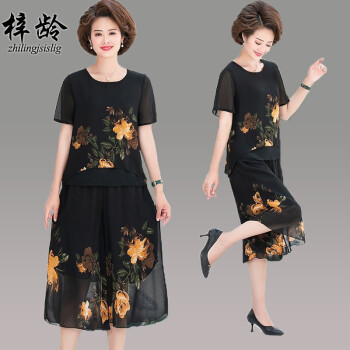 梓龄 中老年女装夏装雪纺两件套装女2020新款妈妈装洋气T恤中年夏季宽松小衫上衣裙裤 黄花 请拍对应尺码 |