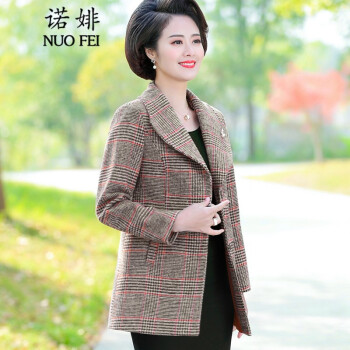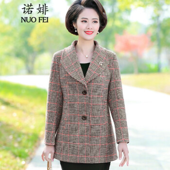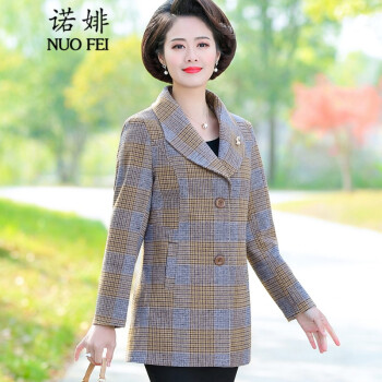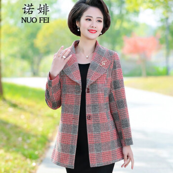 诺婔新款中年妈妈装春秋装外套洋气高贵显瘦上衣40岁60中老年女装春装气质大码休闲薄风衣短西装奶奶衣服 红格子 4XL 建议135-145斤 |