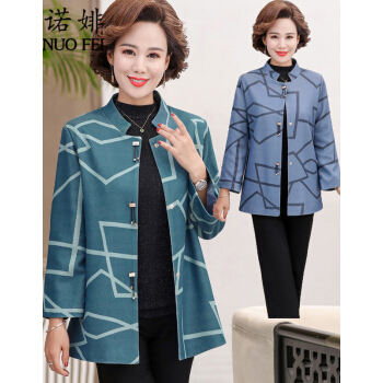 诺婔新款中年妈妈装春秋装洋气外套高贵上衣中老年女装春装气质大码休闲薄风衣短奶奶大码衣服夹克40岁60 湖蓝色 XL 建议90-115斤 |