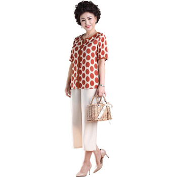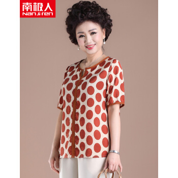南极人 中老年女装妈妈装2020夏季新款中年人洋气减龄波点短袖上衣 N3-NRE411-A901-红色圆点(上衣) 2XL(建议116-126斤) |
