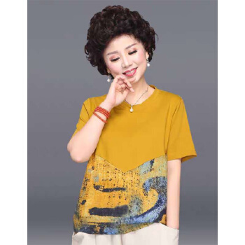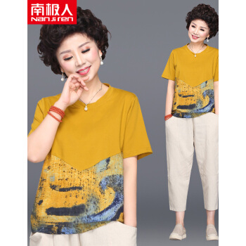 南极人 中老年女装2020夏季新款妈妈套装女大码洋气短袖T恤中年阔太太两件套 N3-GTBF03-735-套装黄色 4XL |