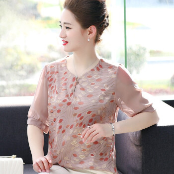 南极人 妈妈装套装2020夏季新款洋气雪纺小衫50岁中老年短袖女士上衣大码两件套 N3-NRA76-9246-套装皮粉 XL 建议95-110斤穿 |
