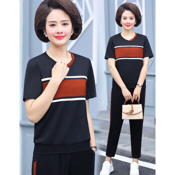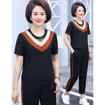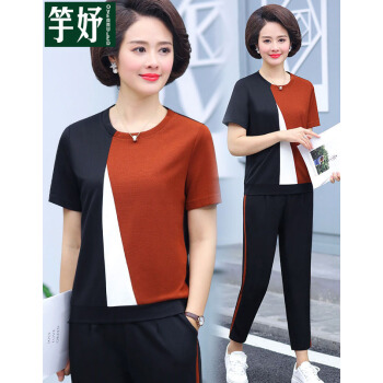 竽妤妈妈装中老年女装2020夏夏装套装短袖t恤女时尚休闲洋气中年女装运动两件套 2号色 请拍对应尺码 |
