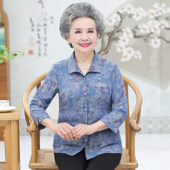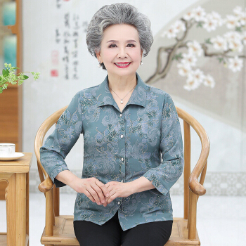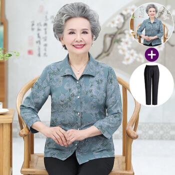 孝珍中老年女装夏装衬衫套装女60岁70妈妈装衬衣两件套七分袖80老年人女装 绿色+裤子 2XL(建议115-125斤) |