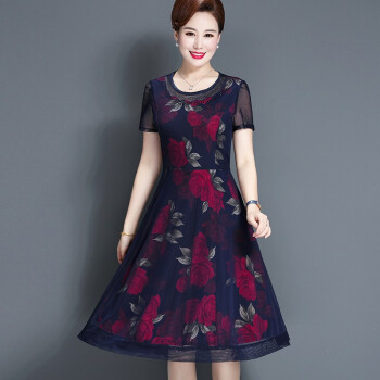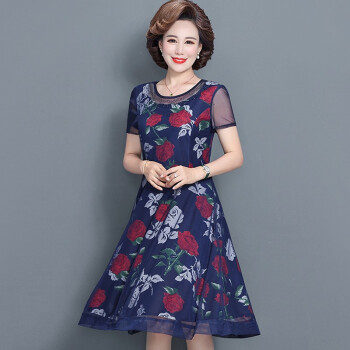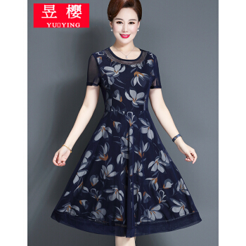昱樱中老年女装连衣裙2020新款夏装碎花裙4050岁妇女阔太太过膝大码宽松中年女装薄款高贵妈妈装裙子 1号色 此码勿拍.请拍自身对应码数 |