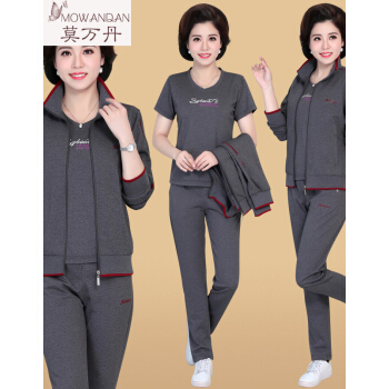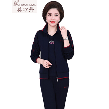 莫万丹高端新品中老年女装妈妈装休闲运动套装女2020秋装新款中年女装春秋运动服三件套YWD2001 ASTS宝蓝 3XL【建议130-140斤】 |
