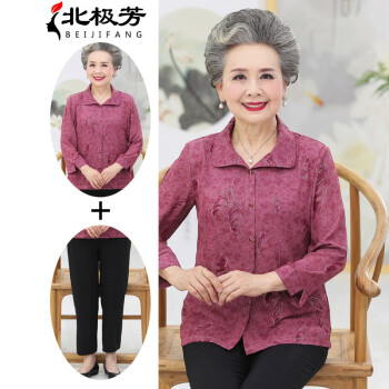 北极芳 中老年女装奶奶装春夏装两件套装翻领衬衫2020老年人夏季印花九分袖衬衣 102-19A-1 红色套装 2XL【105-120斤】 |