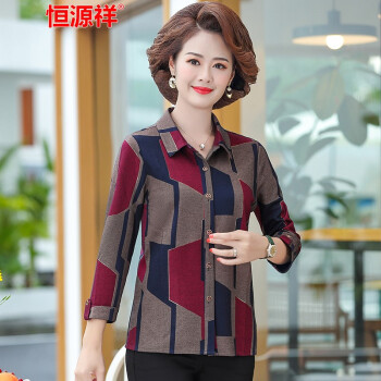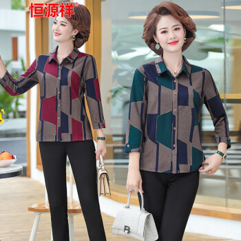 恒源祥中老年妈妈女装春秋新品衬衣女士薄款长袖七分袖衬衫时尚百搭宽松大码开衫老年人奶奶上衣 2101绿色 2XL建议100--115斤 |