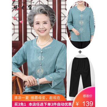 安贞雪中老年女装奶奶装春秋装透气棉衬衫2020秋季老年人女士刺绣衬衣老太太开衫妈妈装LYFS3426 蓝色两件套装 3XL建议120-140斤 |
