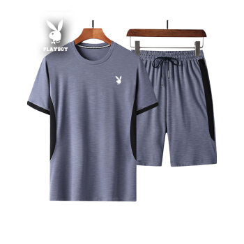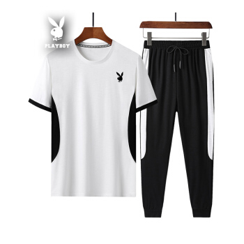 短袖t恤男纯色运动2套装棉2020棉夏季新款韩版宽松翻领潮流T恤衫大码休闲衣服男装九分裤 黑色422 XL |