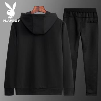 加绒卫衣男套装 秋冬新款加绒连帽套装男士休闲装青年韩版潮流一套衣服卫衣套装男 黑色 ZY1861 L |