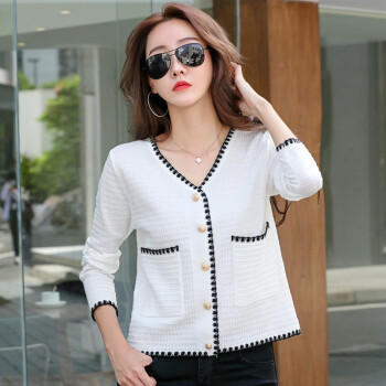 纤丝鸟 TINSINO 针织衫女2020秋季新品小香风撞色针织开衫宽松显瘦毛衣外套女 典雅白 请拍正确尺码 |