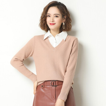 素荨针织衫女套头短款秋装2020年新款衬衫领毛衣女宽松百搭春秋打底衫 黄色15102 M |