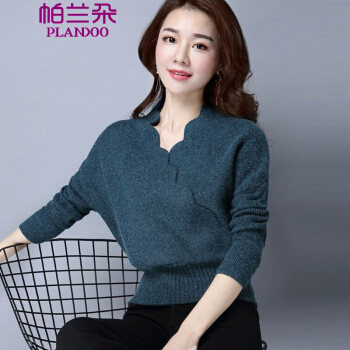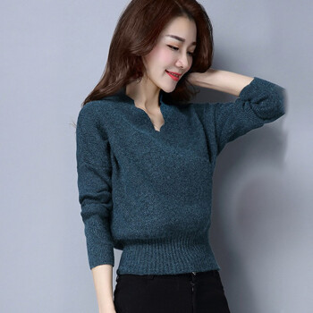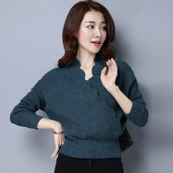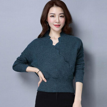 帕兰朵 针织衫针织衫女2020秋季新款时尚交叉V领毛衣女宽松收腰显瘦百搭打底上衣 孔雀蓝 请拍正确尺码 |