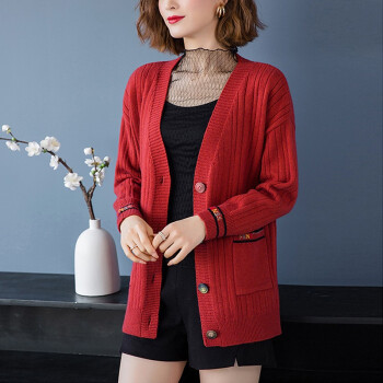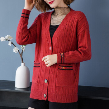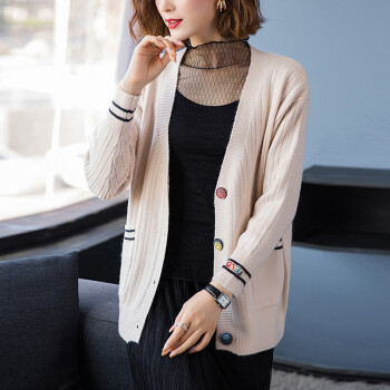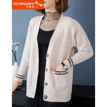 红蜻蜓 春秋装针织开衫洋气2020年新款女装韩版宽松短款上衣潮毛衣外套长袖时尚 WL690-3 米白 均码 |