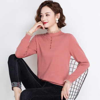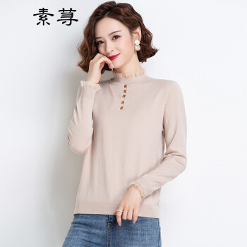 素荨半高领针织衫女秋装2020年新款女装薄款毛衣内搭上衣春秋打底衫 杏色8221 M |