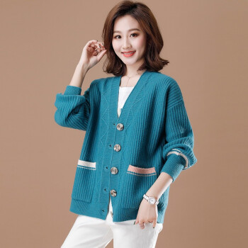 红蜻蜓 针织开衫女短款秋装2020年新款韩版外搭显瘦毛衣外套洋气春秋百搭针织衫女 WL637 蓝色 均码 |