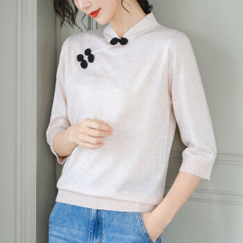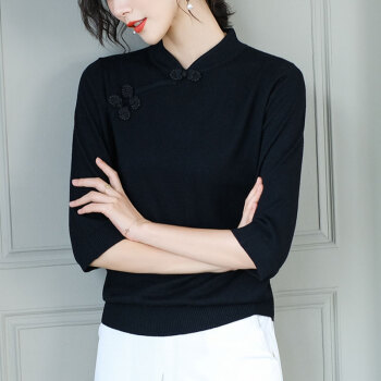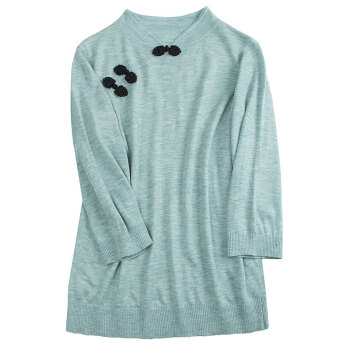 歌米拉 复古针织衫女套头春秋季七分袖上衣2020秋装新款薄款毛衣打底衫 湖绿色 M |