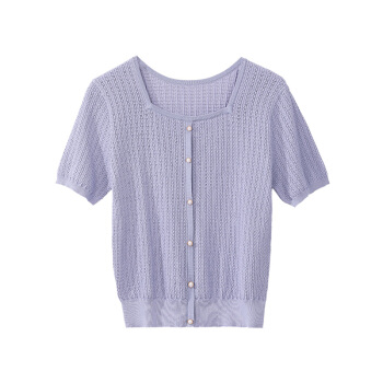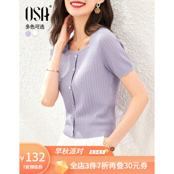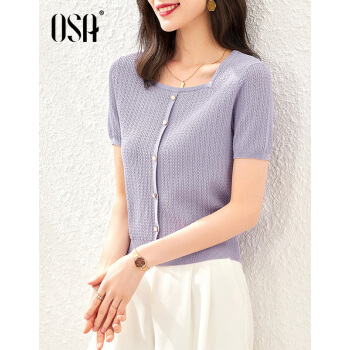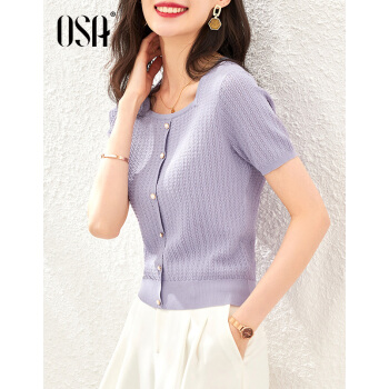 OSA欧莎紫色短款冰丝针织衫女士短袖2020年新款夏季薄款小香风上衣秋 紫色(预售8月8日发) M |