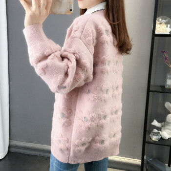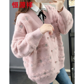 恒源祥针织衫女2020秋季新品韩版ing潮慵懒风宽松显瘦开衫针织衫女百搭很仙的女外套1487 粉色 M |