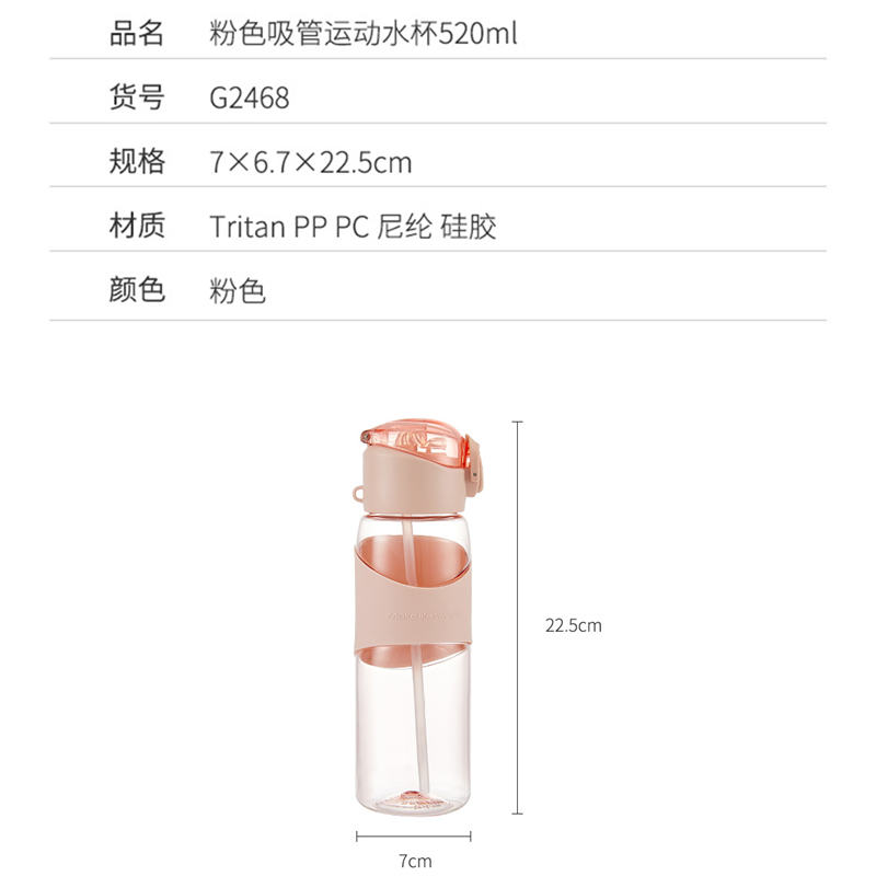 粉色吸管运动水杯520ml【Tritan PP PC 尼纶 硅胶/粉色】 |