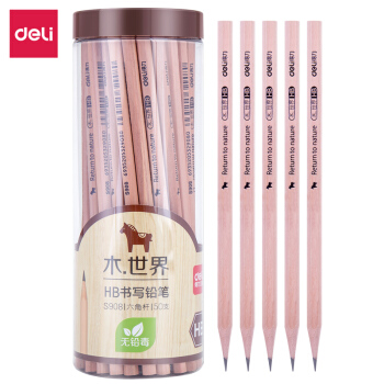 得力(deli)木世界系列六角笔杆原木HB铅笔素描绘图学生铅笔 50支/桶S908 |