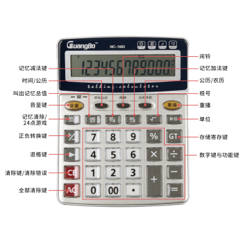广博(GuangBo) 语音型计算器大号12位日期闹钟计算机 单个装NC-1683 |