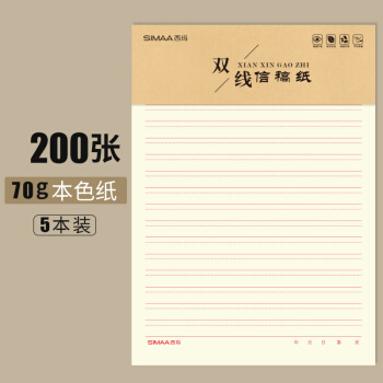 西玛(SIMAA) 40张/5本装16K双线信纸 草稿纸作业本申请书信笺纸8522 |